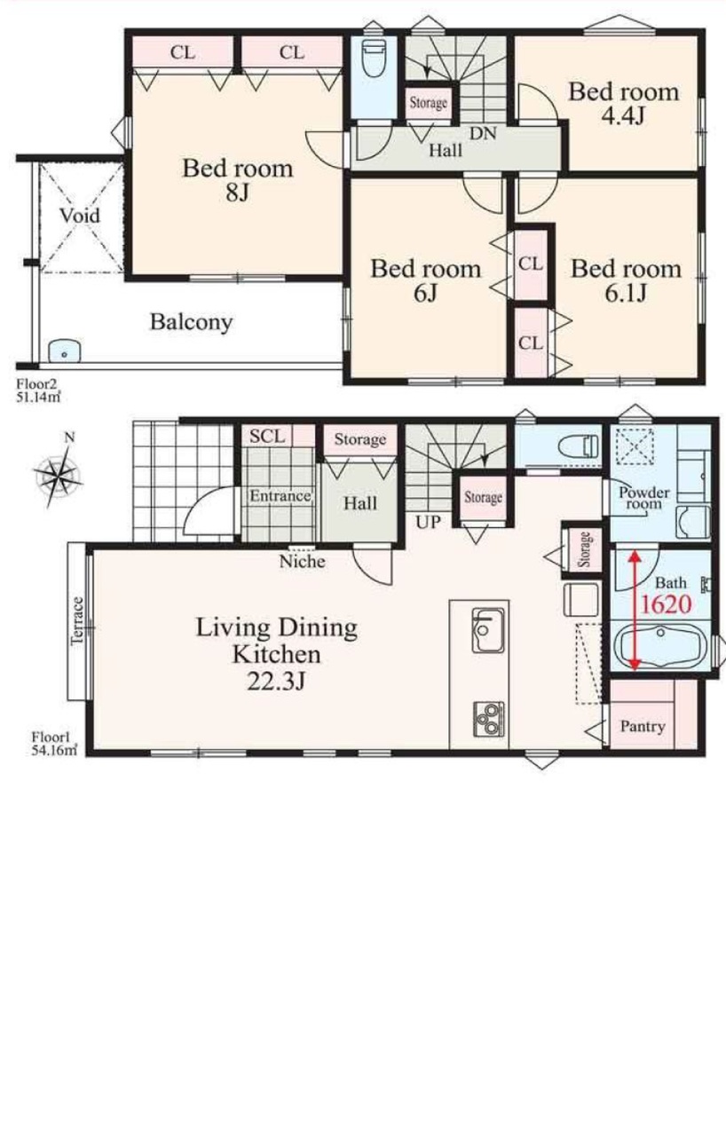| 間取 | 4LDK (LDK22.3帖、洋室8.0帖、洋室6.0帖、洋室6.1帖、洋室4.4帖) | ||