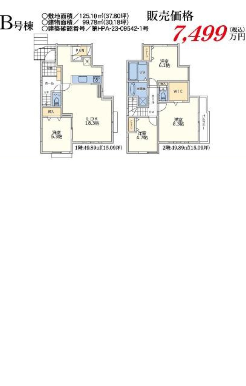 | 間取 | 4LDK + WICあり (LDK18.3帖、洋室5.3帖、洋室6.1帖、洋室4.7帖、洋室8.3帖) | ||