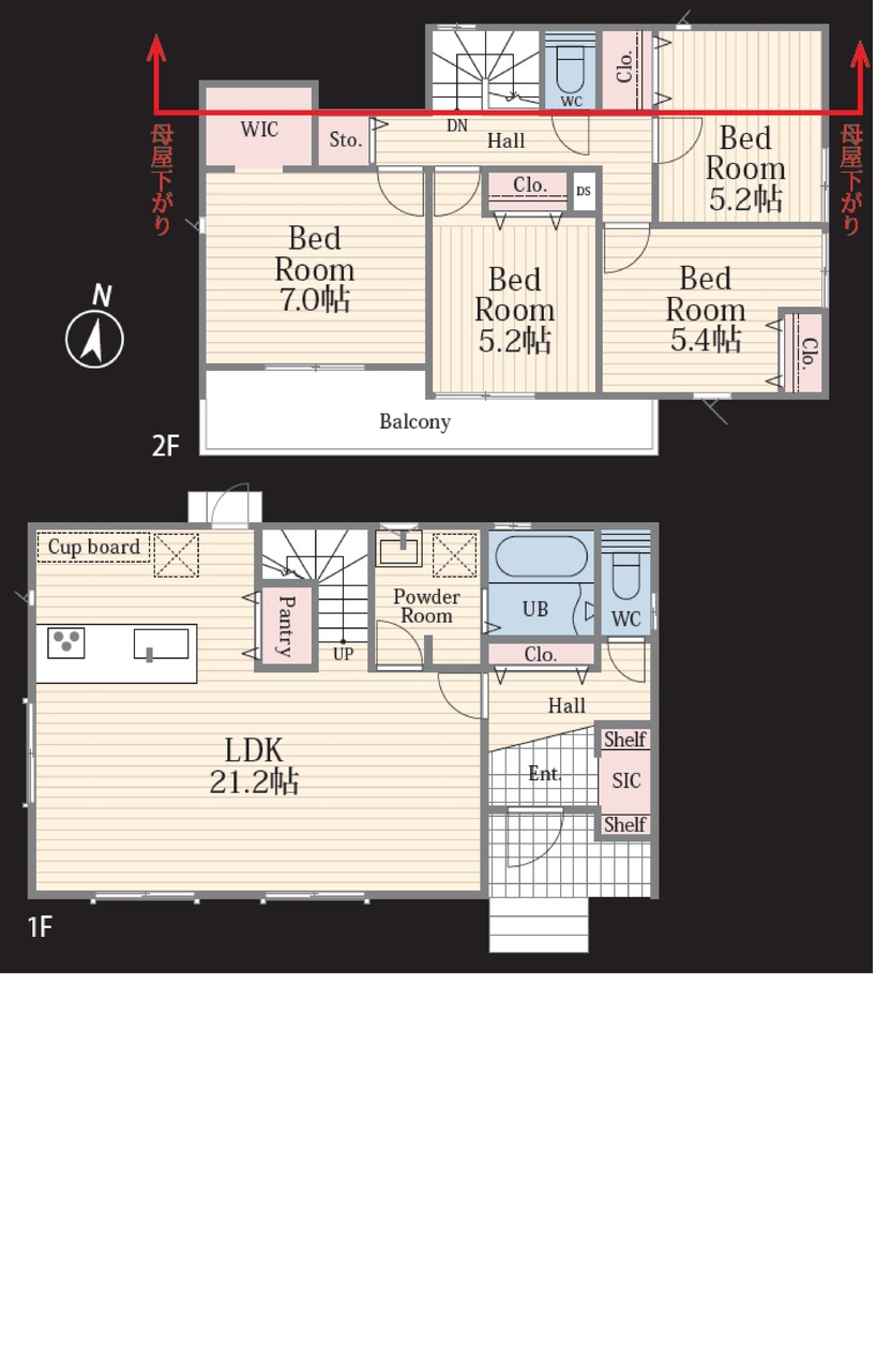 | 間取 | 4LDK (LDK21.2帖、洋室7.0帖、洋室5.2帖、洋室5.2帖、洋室5.4帖) | ||
