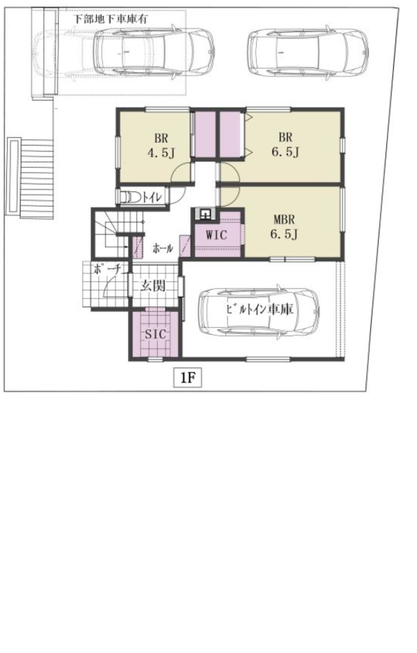 | 間取 | 3LDK + WIC・SIC・パントリー (LDK21.7帖、洋室6.5帖、洋室6.5帖、洋室4.5帖) | ||