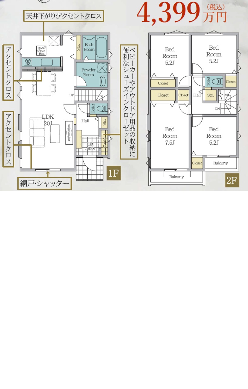 | 間取 | 4LDK (LDK20.0帖、洋室6.7帖、洋室5.5帖、洋室5.2帖、洋室5.2帖) | ||