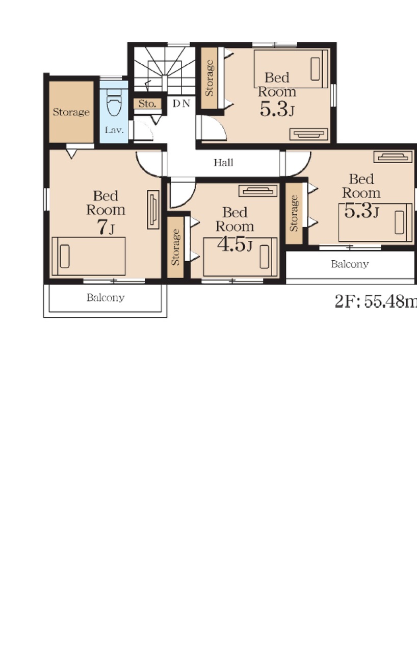 | 間取 | 4LDK (LDK21.2帖、洋室7.0帖、洋室5.3帖、洋室5.3帖、洋室4.5帖) | ||